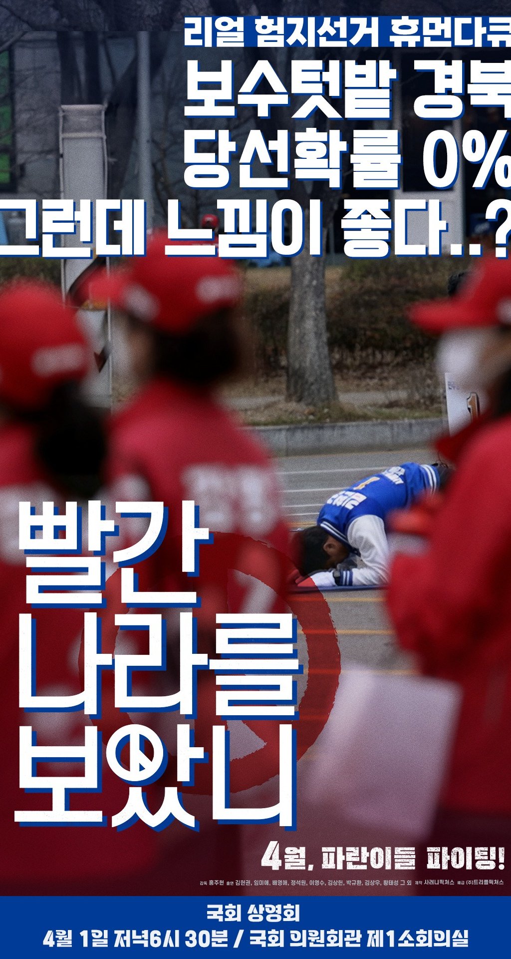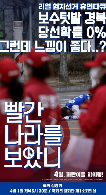 사려니픽쳐스가 제작한 리얼 험지 선거 휴먼 다큐멘터리, <빨간 나라를 보았니>가 오는 4월 국회 상영을 앞두고 있습니다.