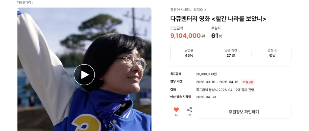 다큐멘터리 영화 <빨간 나라를 보았니> 개봉 지원 펀딩 안내
